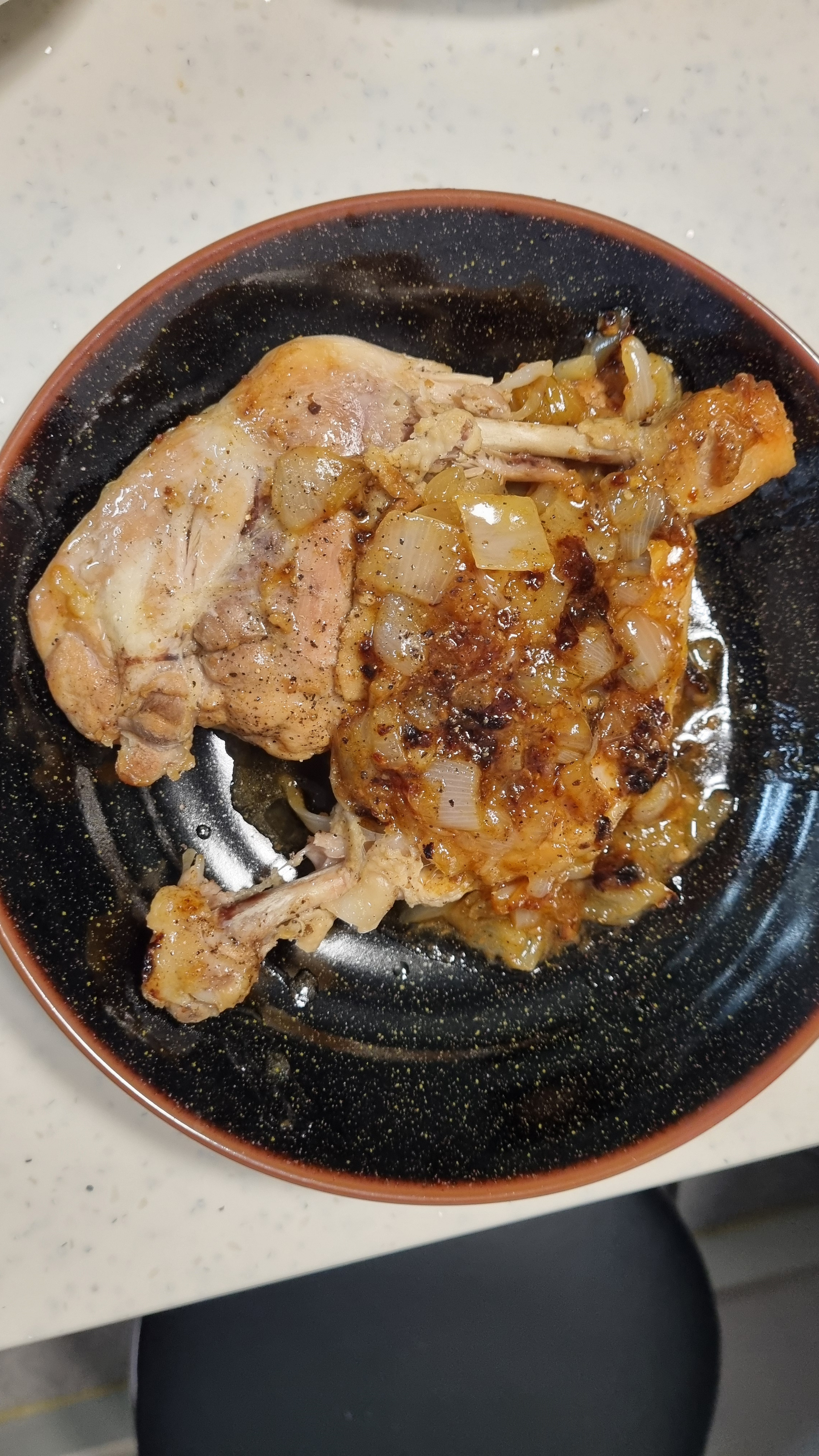 4. 닭고기 위에 볶은 양파를 얹어서 드시면 됩니다.