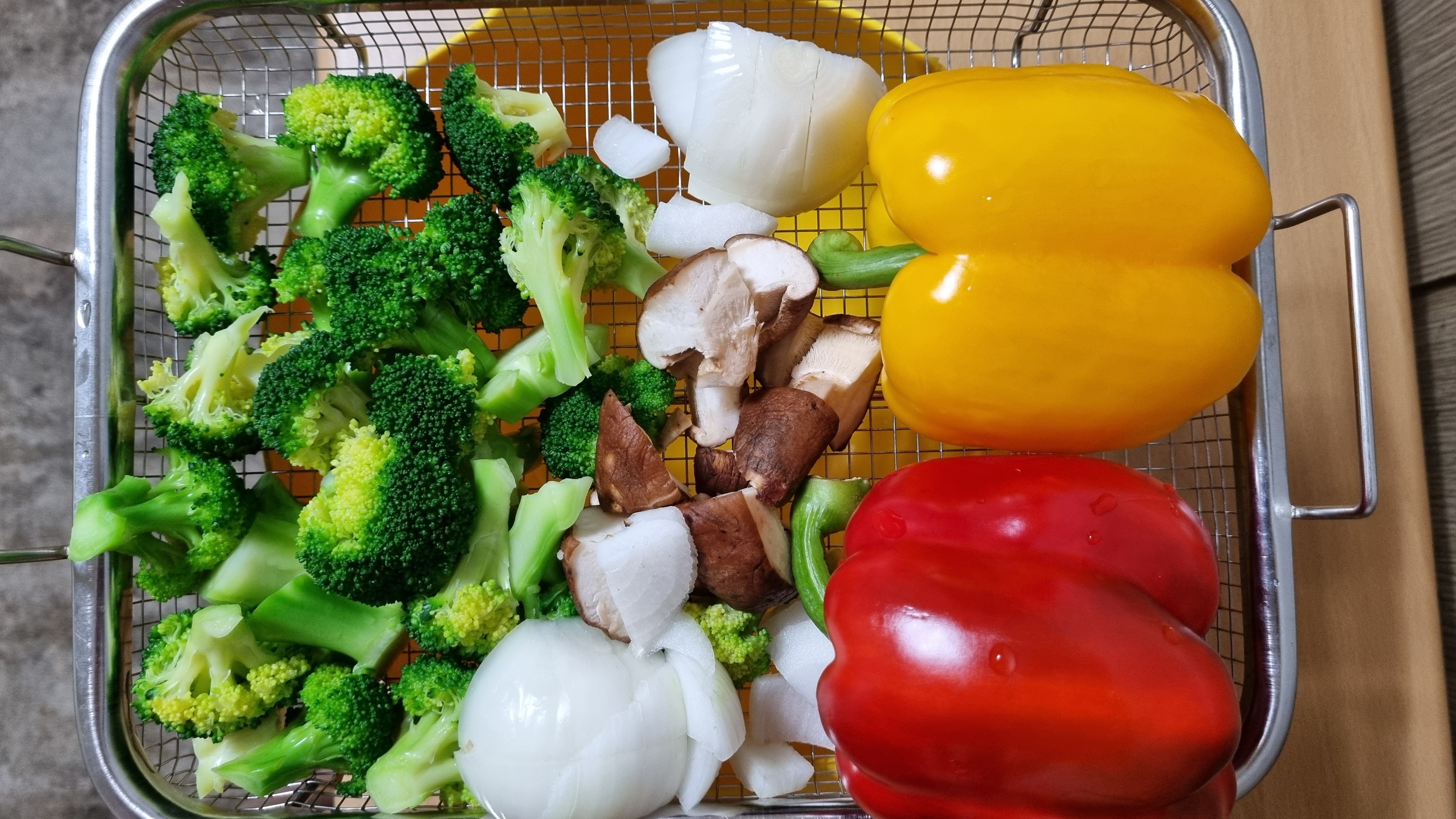 2. 브로컬리는 살짝 데치고, 다른 채소들도 같은 크기로 썰어주세요.