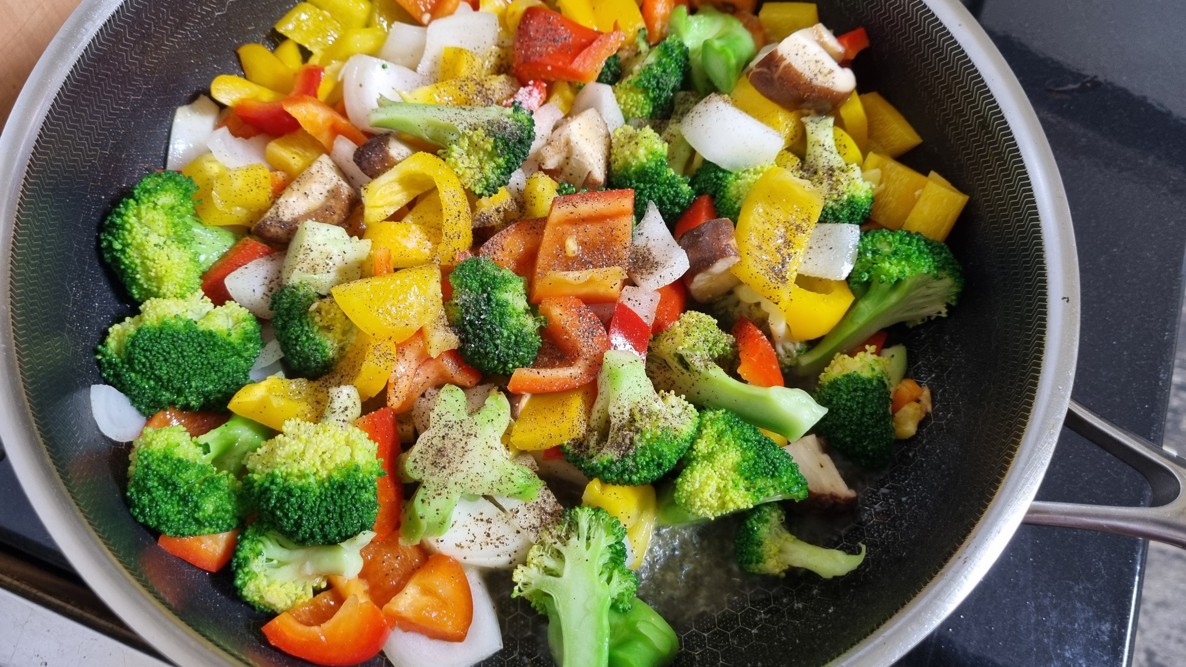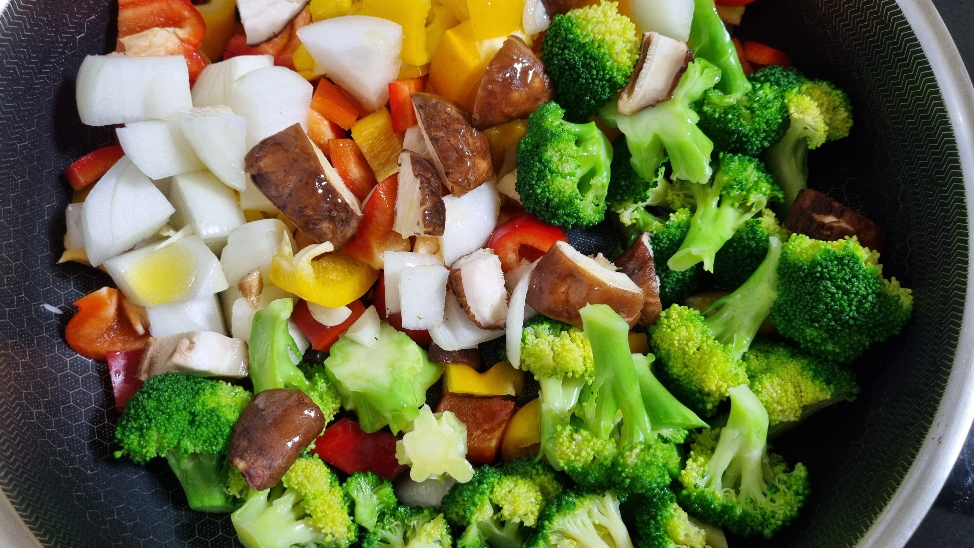 4. 팬에 올리브오일을 두르고 채소를 먼저 볶아주세요.