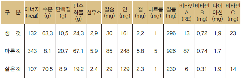 ※ 식품성분표, 제 7개정판, 농촌진흥청. 2006