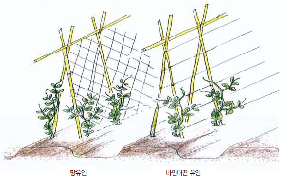 ● 완두 덩굴을 유인하는 방법은 농가에 따라 다소 차이가 있지만