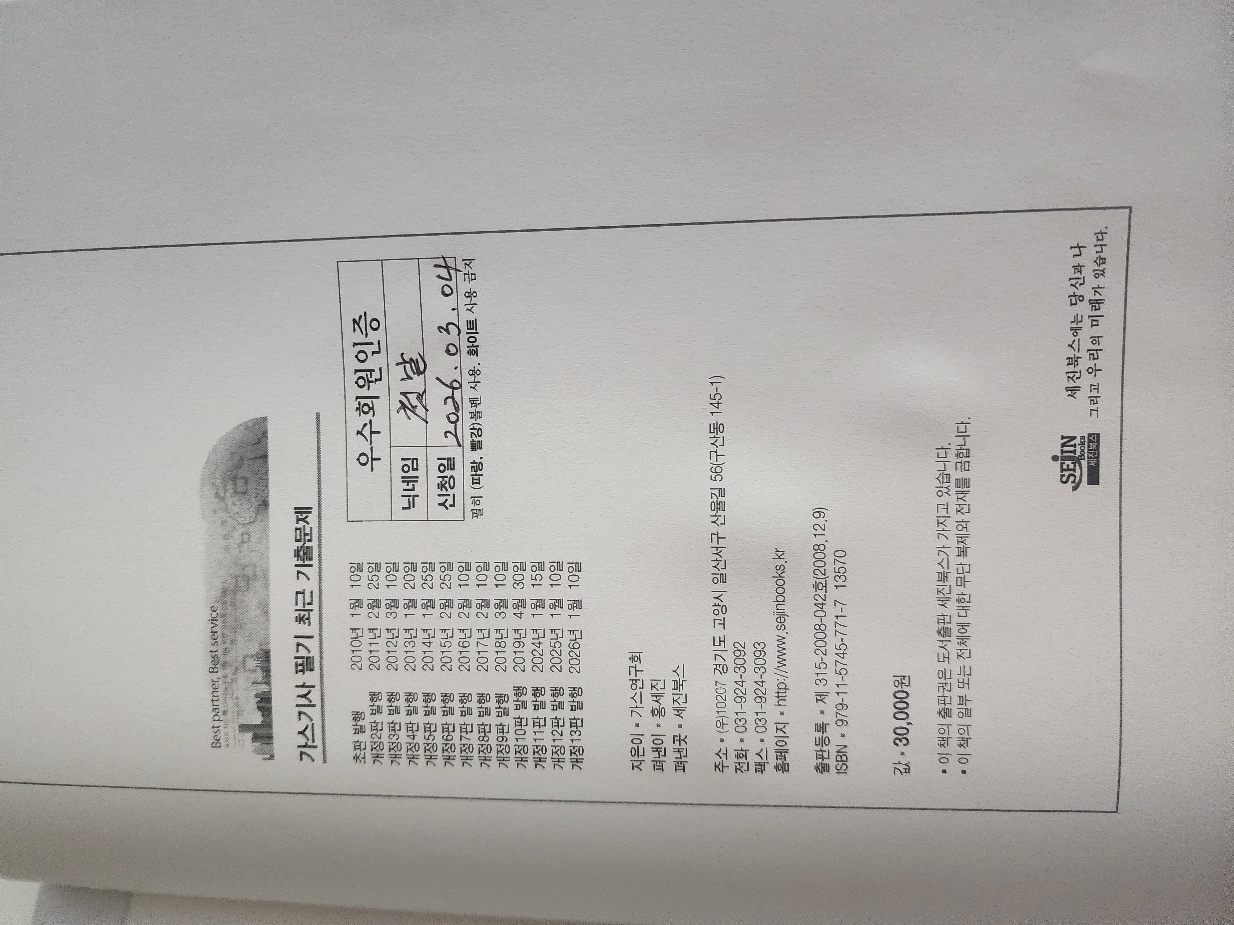 등업 부탁 드립니다 작성자첫날|작성시간26.03.04|조회수14 목록 댓글 1 글자크기 작게가 글자크기 크게가 다음검색 현재 게시글 추가 기능 열기 북마크 공유하기 신고 센터로 신고 댓글 댓글 1 댓글쓰기 답글쓰기 댓글 리스트 작성자세진북스 | 작성시간 26.03.05 우수회원 등업 완료. 꼭 합격하세요.^^우수회원 자격기간은 평생 무료입니다.책으로 공부중에 오타나 오답이 있는 경우에는 질문방에 올려주시면저자분이 바로 답변 드리도록하겠습니다.^^ 댓글 전체보기