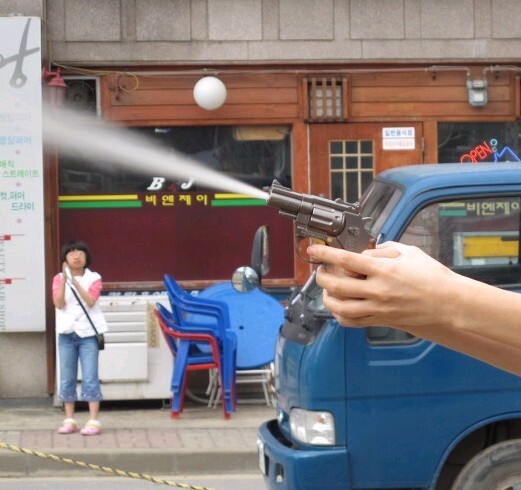 허가를 내는 가스총은 흔히 말하는 에프킬러 모기약 방식.소화기 뿌리는 방식. 이라고 불리는데