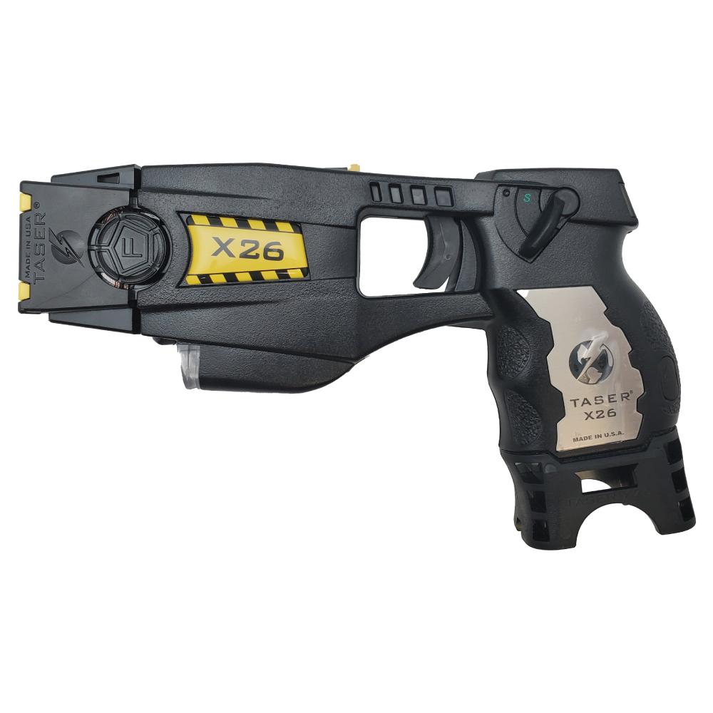경찰들이 사용하는 2개의 줄이 나가서 상대방 몸에 맞아서 전기충격을 주는 전기권총 테이저 건도
