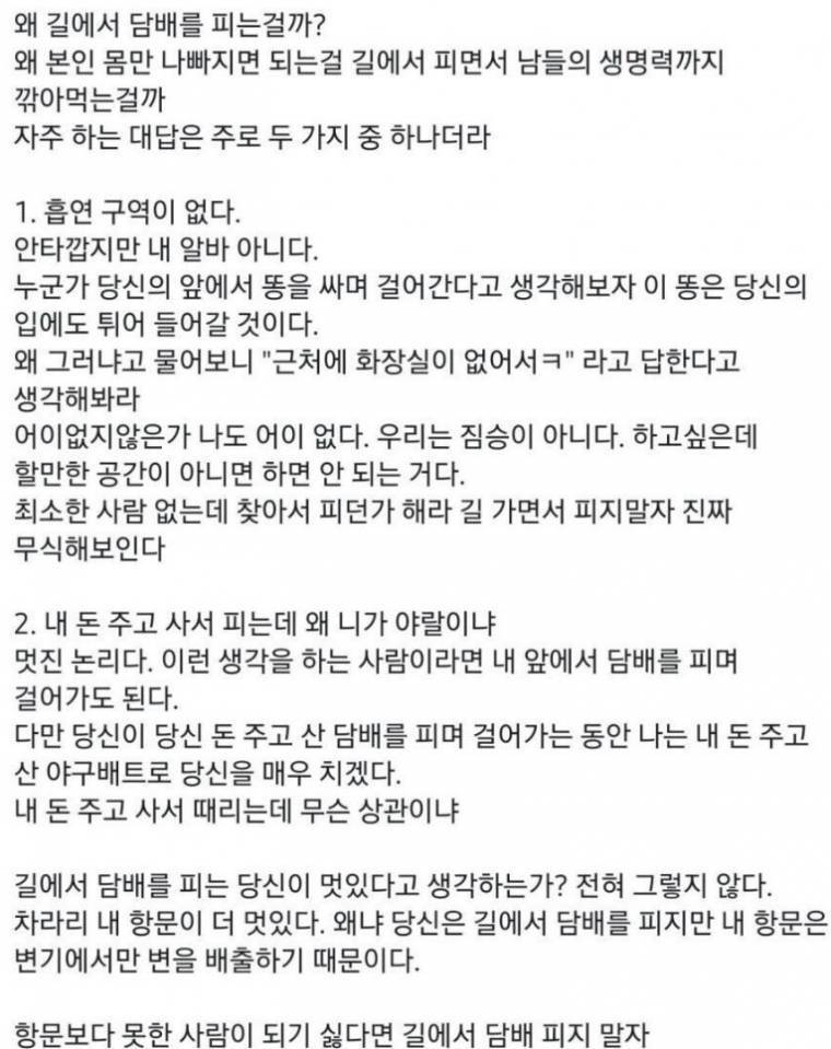 작성자세화 작성시간 20.03.18 담배때문에 시비도 많이 붙는다죠