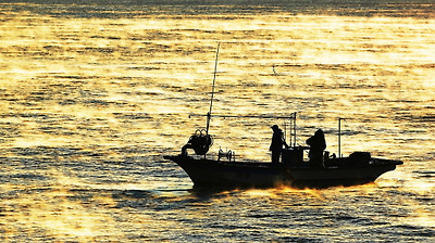 태양이 던진, 거대한 그물 속에서 은빛 배를 뒤집는 어린 물고기들,