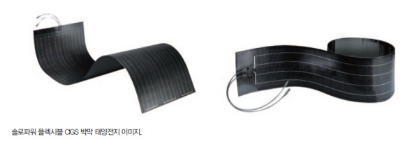 솔로파워의 CIGS 플렉시블 박막 태양전지는 25년 품질 보증과 함께, 열에 의한 백화 및 열섬화 현상이 발생하지 않고 쭈글쭈글해지지 않는 데다, 설사 찢어지고 훼손돼도 90%의 전력 생산이 가능한 것이 특징이다.