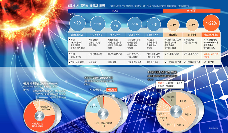페로브스카이트전지 급성장 눈길 / 한국 연구팀이 최고 효율로 선두
