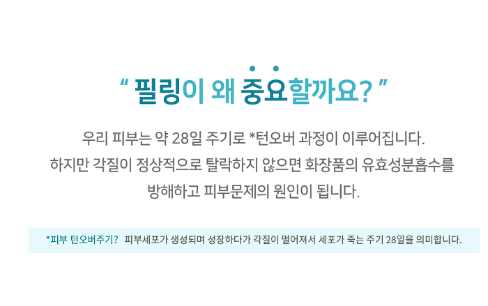 얼굴에 각질이 남아 있으면 아무리 좋은 걸 발라도 흡수가 되지 않아요~