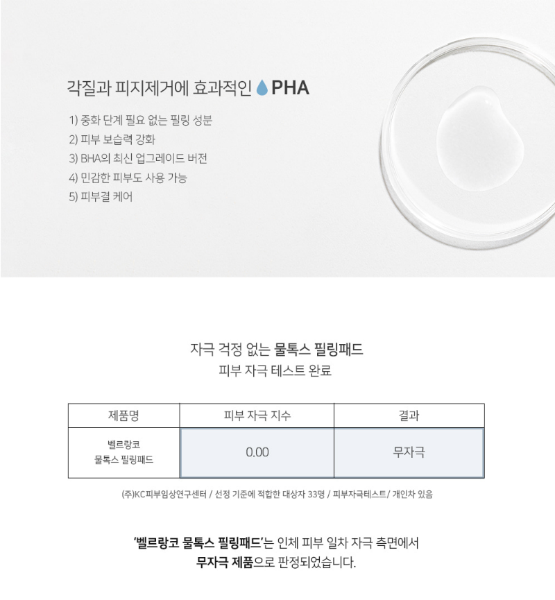 요 벨르랑코 필링 패드는 임상테스트를 통해 피부자극지수 0점을 받은 아주 순한 제품이랍니다^^