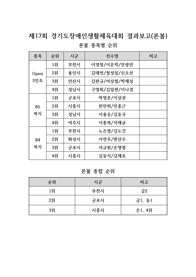 제17회 경기도 장애인 생활체육대회 작성자고승자|작성시간23.10.18|조회수129 목록 댓글 0 글자크기 작게가 글자크기 크게가 2023년 9월 22일~23일 시흥시 론볼경기장종합순위 시상식OPEN 3인조 시상식B5 복식 시상식B4복식 시상식 다음검색 현재 게시글 추가 기능 열기 북마크 공유하기 신고 센터로 신고 댓글 댓글 0 댓글쓰기 댓글 리스트