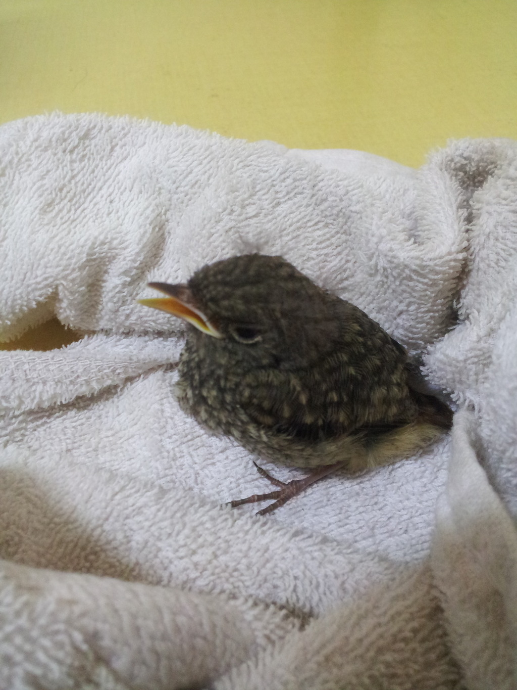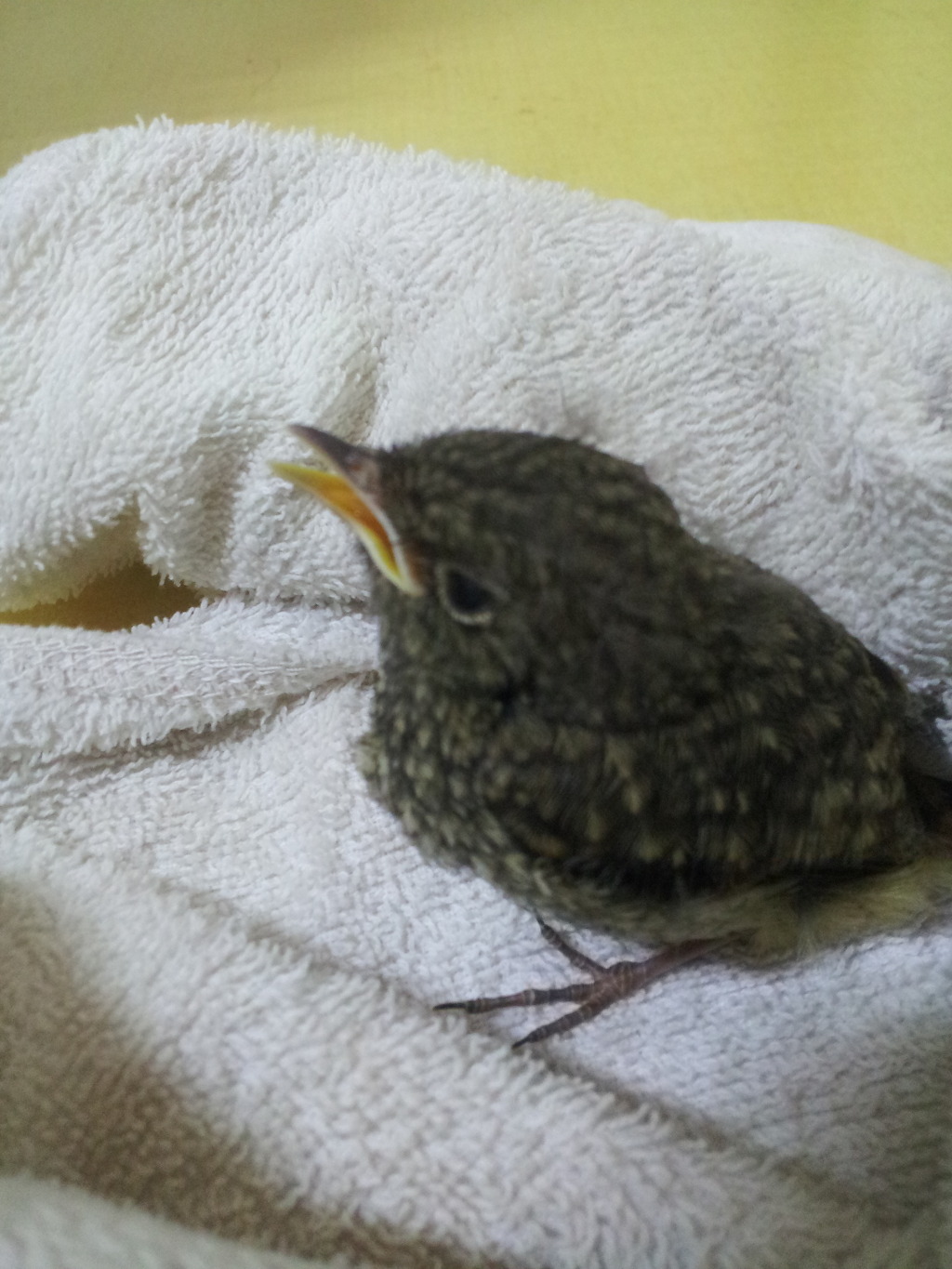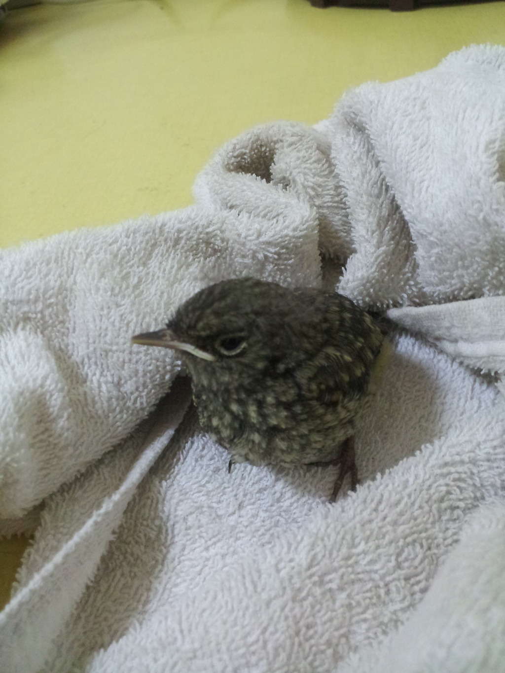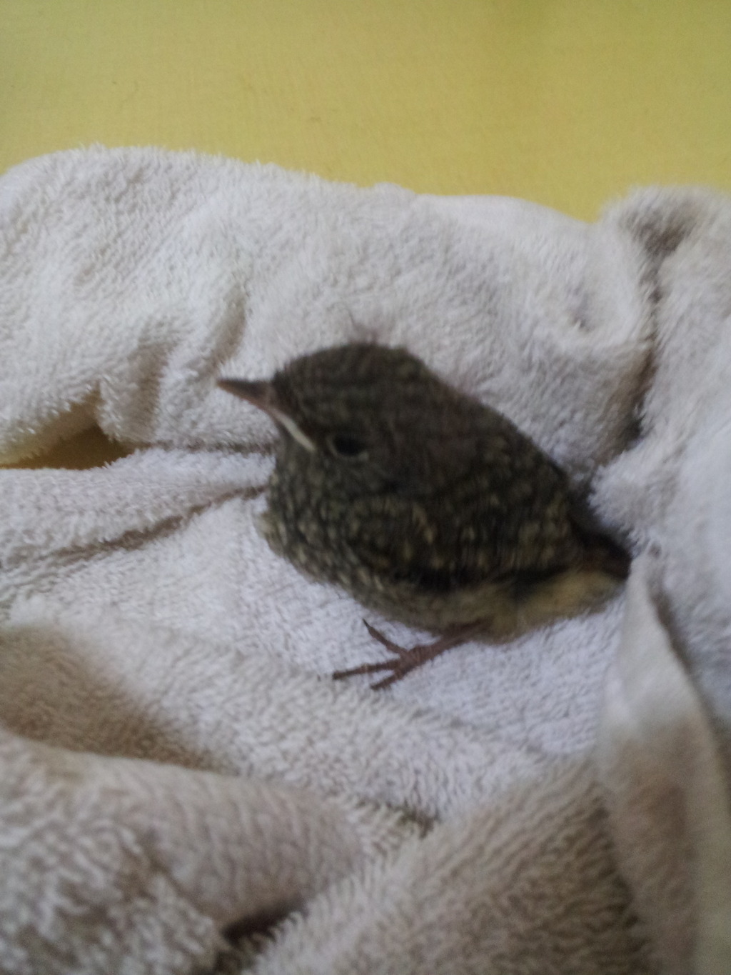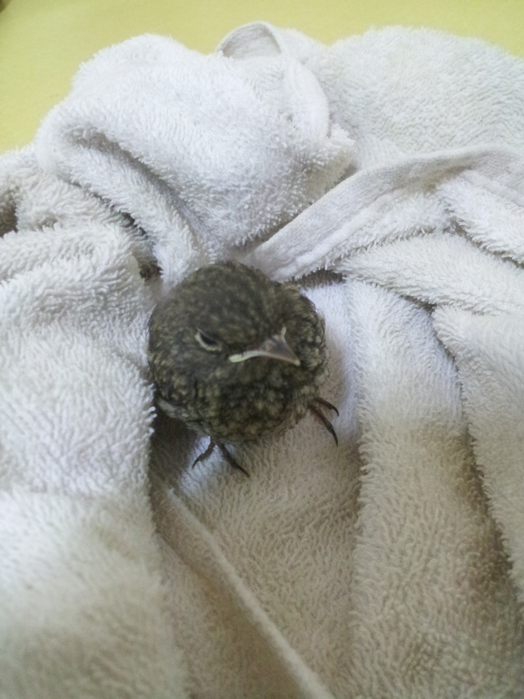 그 위에 타올에다가 새를 감싸서 놓고 상자를 덮어 두었다.