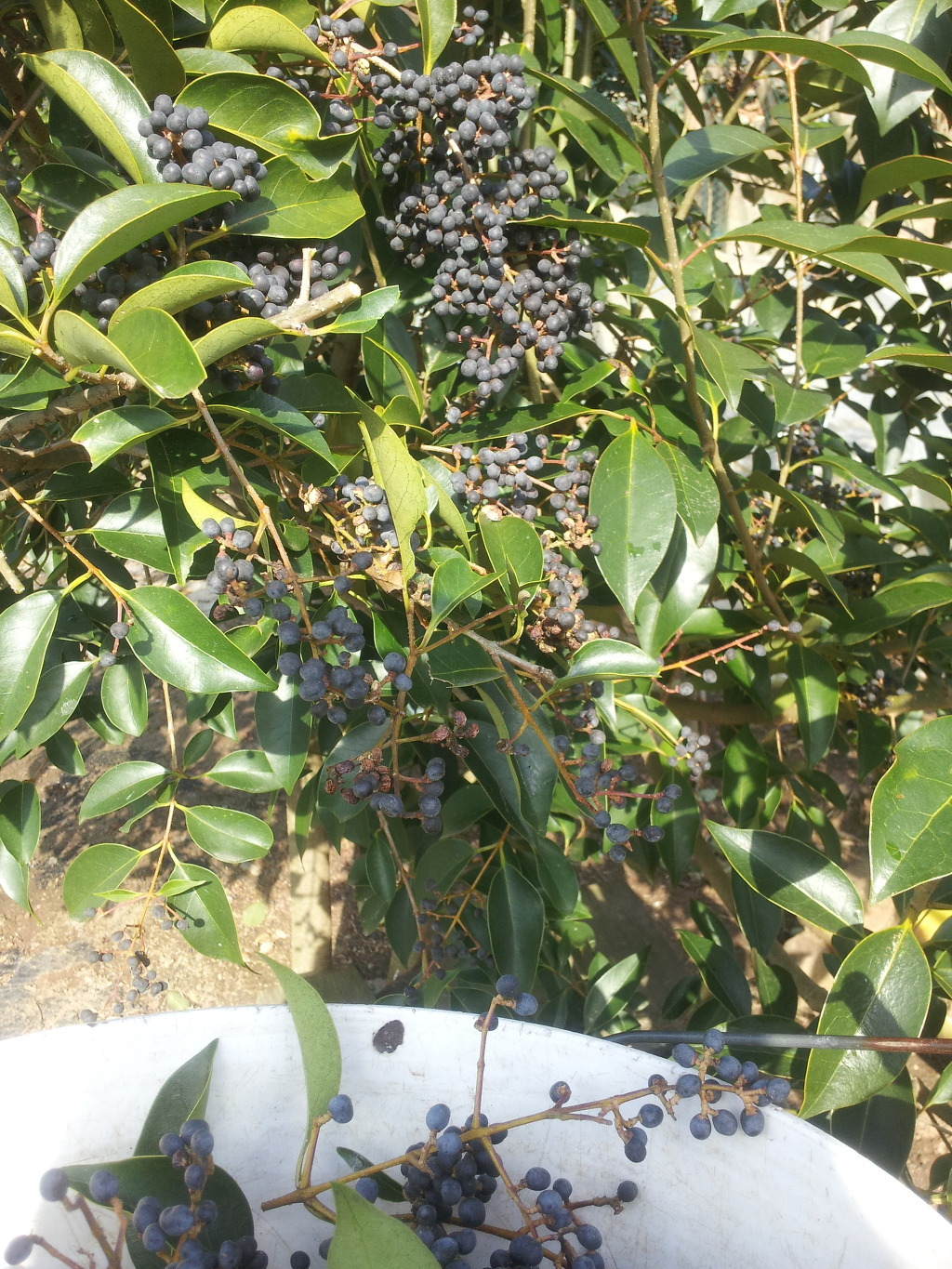 당광나무 열매를 다 수확한 후에 광나무 열매를 마져 다 땄다.