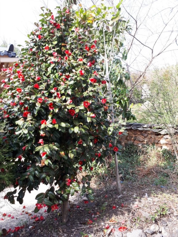 아래 동백나무는 제가 귀농하여 2년생 모종을 심은 것인데 불과 십수년만에 이렇게 자란 것입니다.