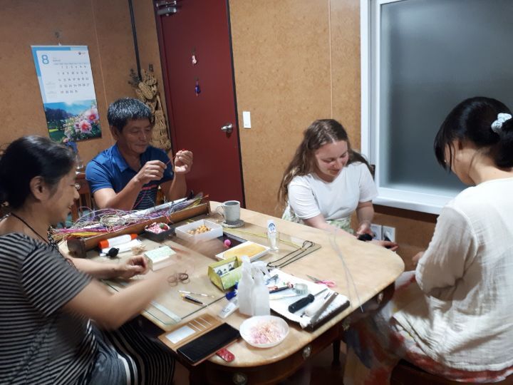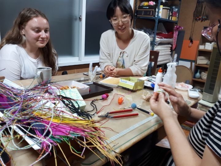 한지공방에서 한지공예 목걸이 만들기 체험도 하고..
