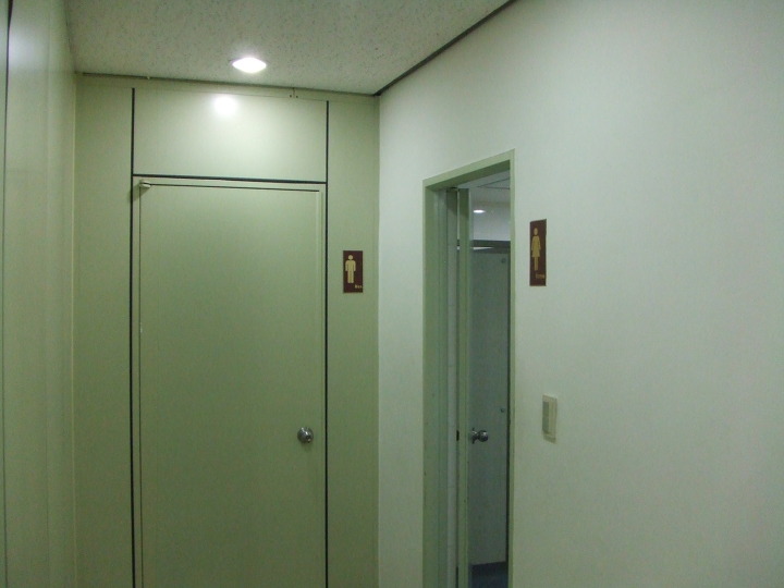 2층 복도 중간쯤에 남자, 여자 화장실이 각각 1개씩 있습니다.