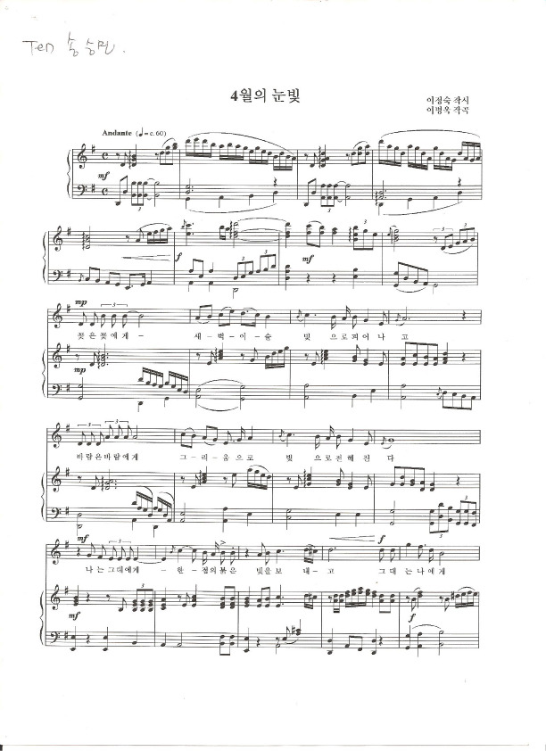 4월의 눈빛 - 이정숙詩- 이병욱曲-Ten.송승민