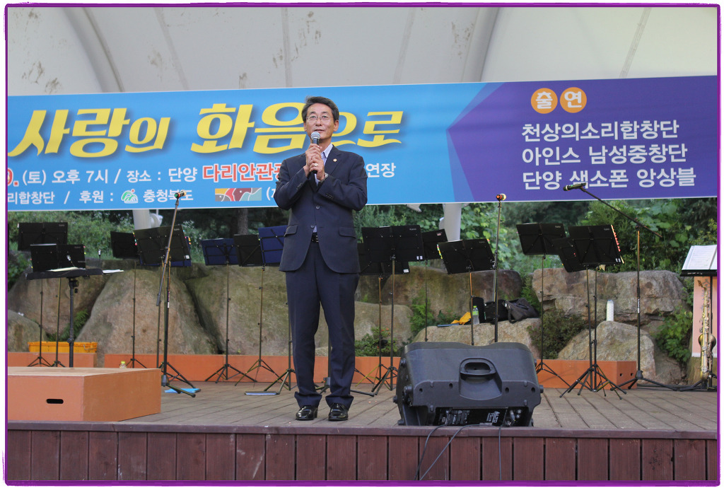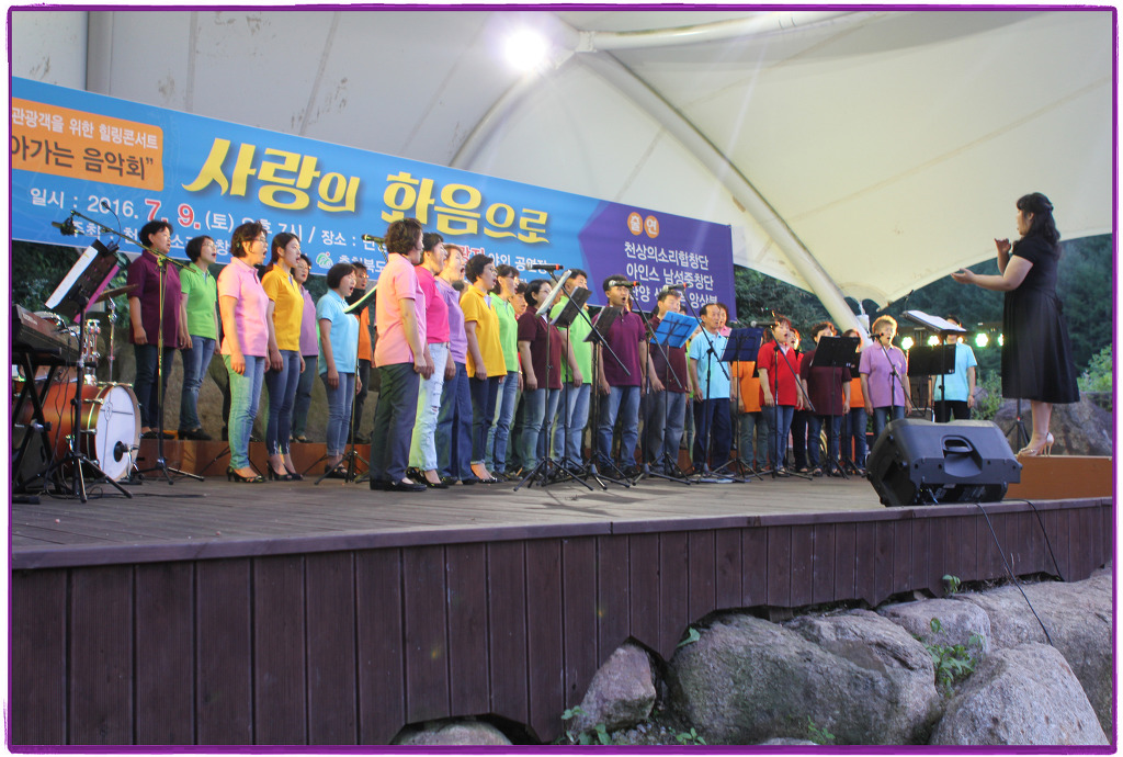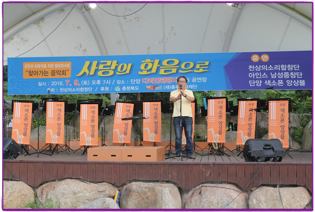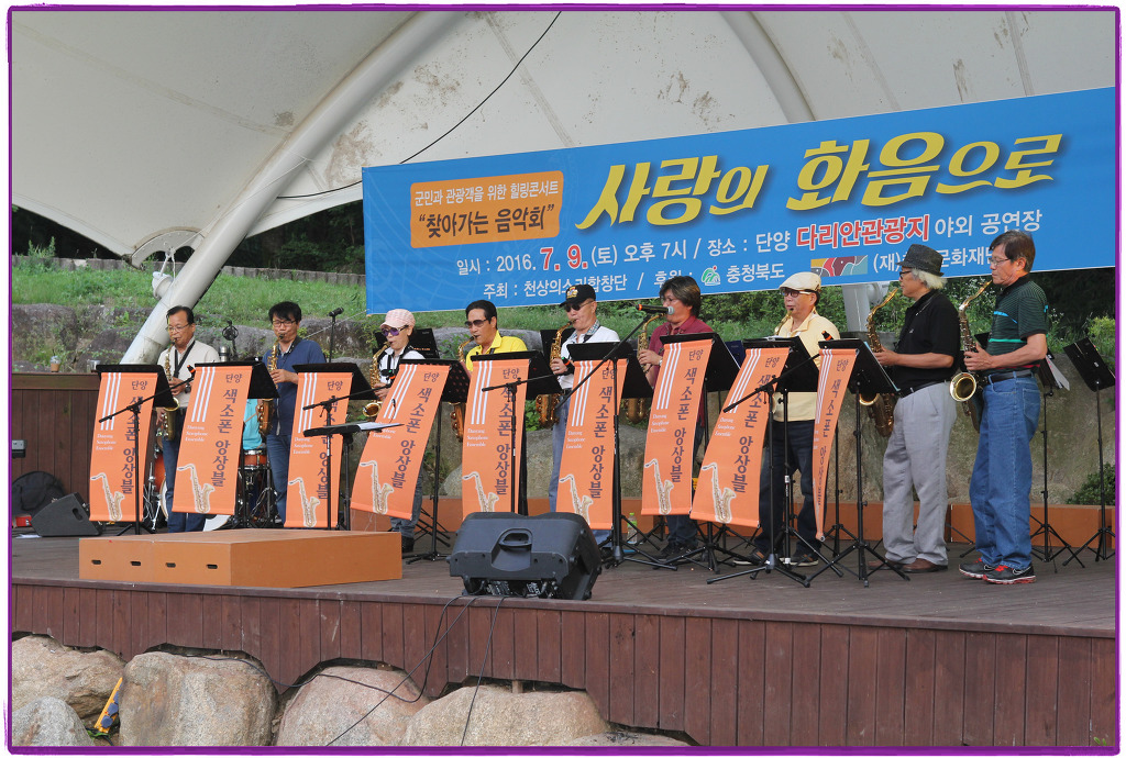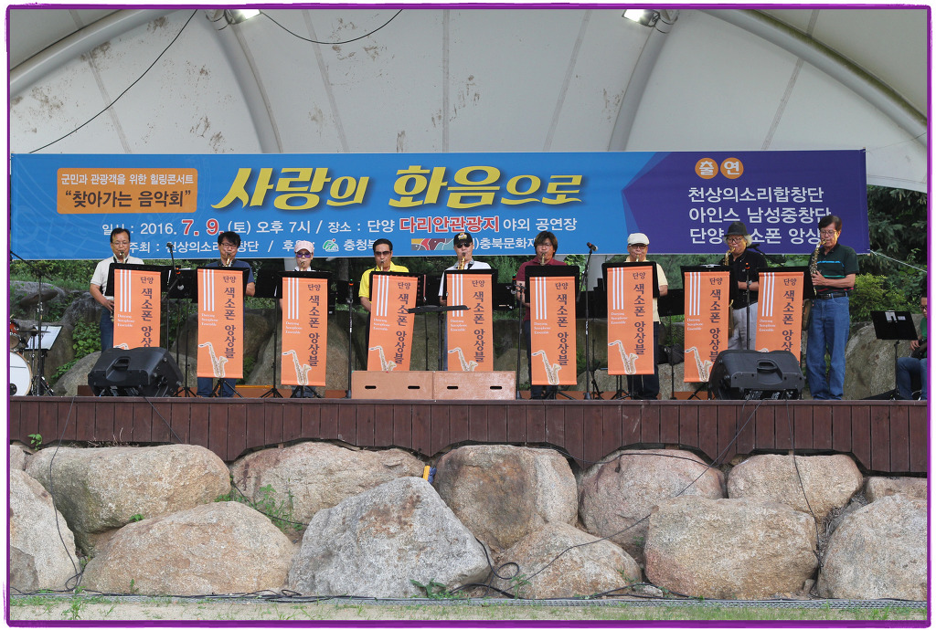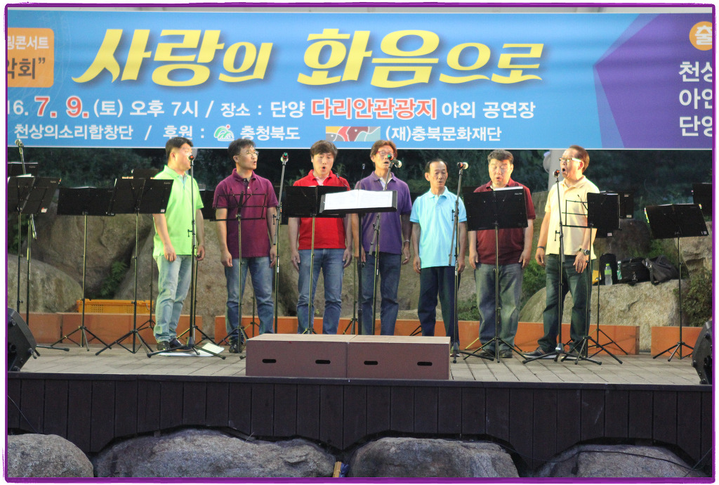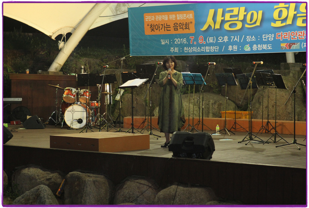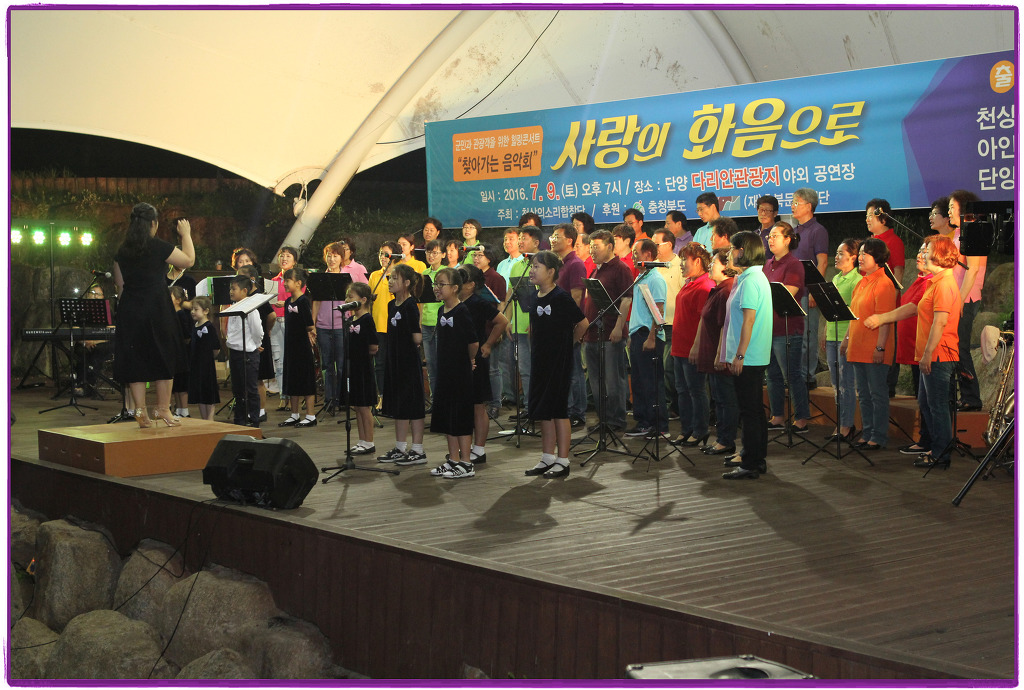 지난 7월9일(토) 단양 다리안관광지 야외공연장에서 '찾아가는 콘서트 - '사랑의 화음으로' 음악회를 열었다.