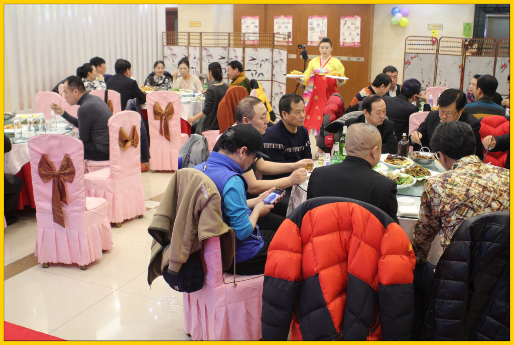 모든 공연을 마치고 함께 출연한 모두를 북한식당에 초청해서 만찬을 베풀었다. 한복 입은 북한 종업원의 모습도 보인다.