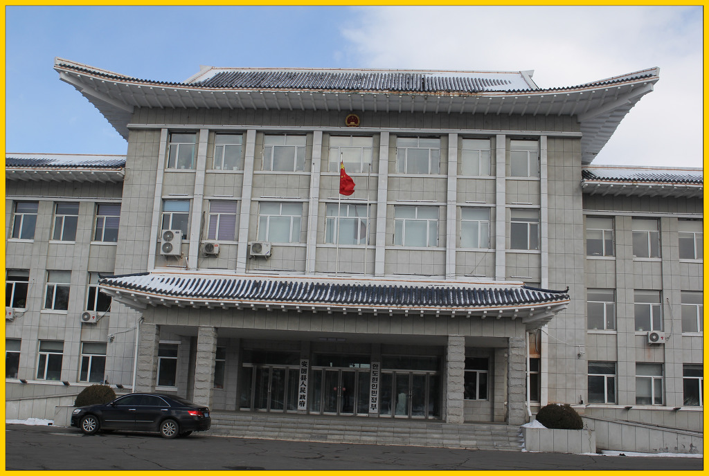 안도현 인민정부 앞에 도착하여 정부 간부들의 환영을 받았다.