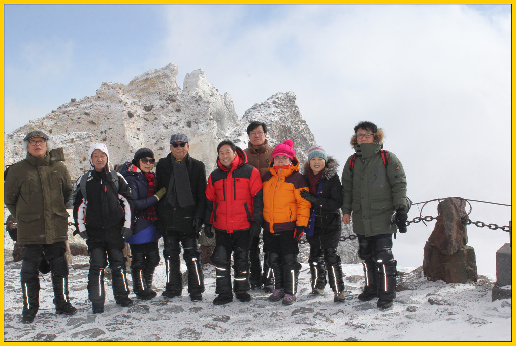 민족의 영산인 백두산 정상에서 우린 추위를 무릅쓰고 환호했다.