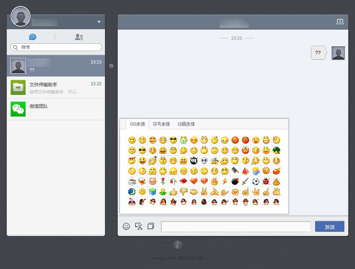 13. 위쳇(WeChat) PC버전의 기능으로 각종 이모티콘 사용도 가능하고 파일첨부 캡쳐화면(별도설치)등 여러가지 기능이 사용 가능합니다