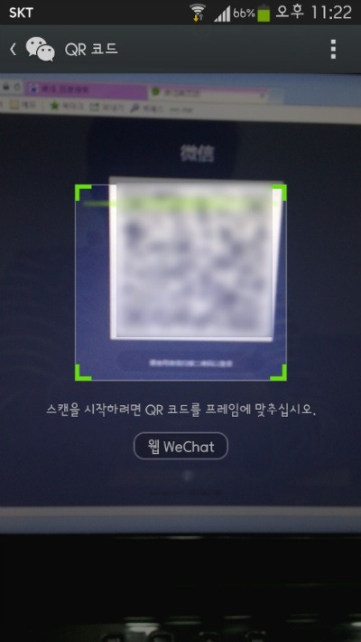 4. QR코드 스캔화면이 나오고 위쳇(WeChat) 사이트에 보이는 QR코드를 스캔합니다.