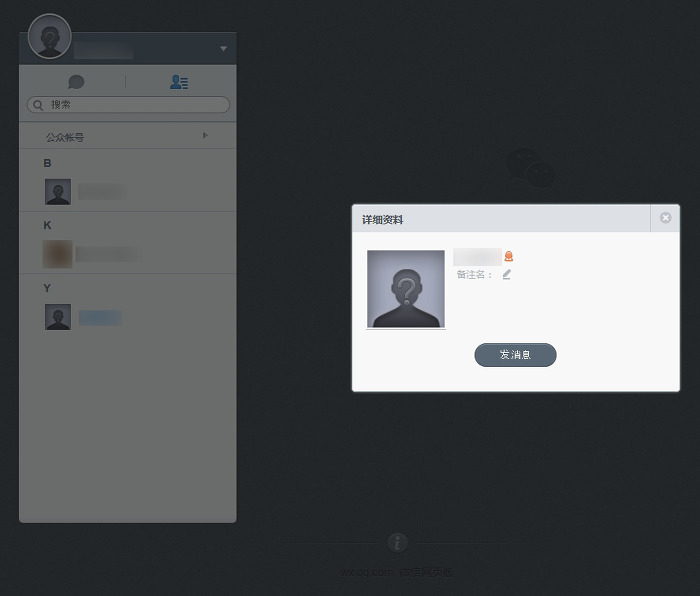 9. 친구목록에서 대화를 원하는 상대를 선택하여 클릭하면 위의 이미지와같이 팝업이 나오고 发消息(메세지보내기) 버튼을 클릭하시면 원하는 상대와 대화가 시작됩니다.