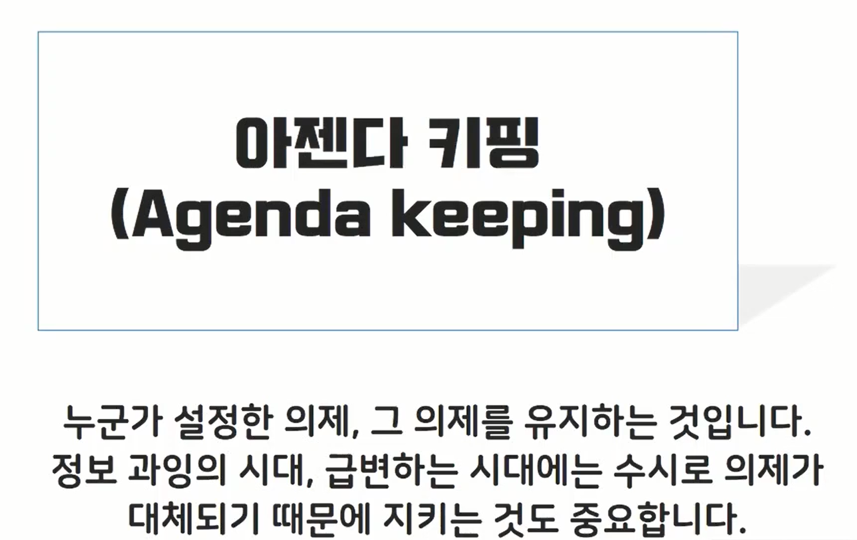 (아젠다셋팅)을 한것 입니다