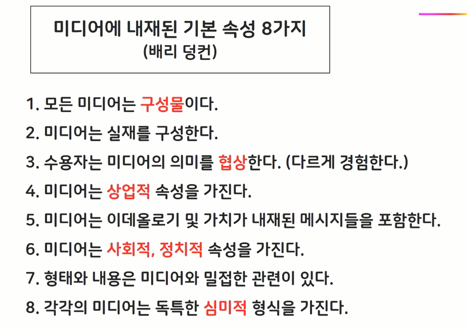 뉴스(미디어)에 내재된 기본 속성의 8가지