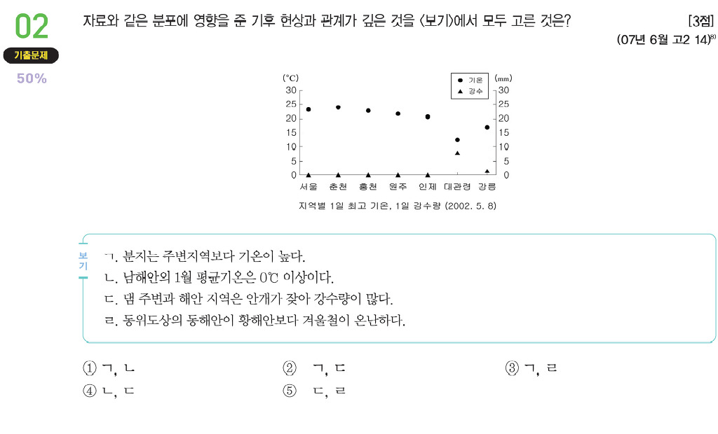 ㄴ. 주어진 지문 자체는 맞는 말이지만 자료에서 남해안을 추정하기 힘들므로 틀린 답이 되구요.
