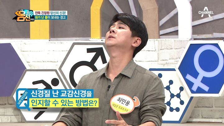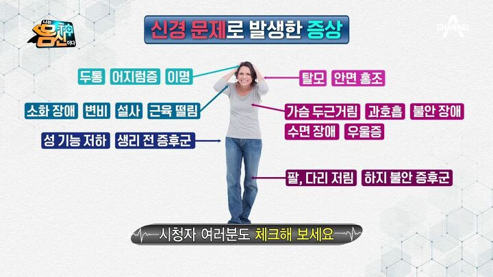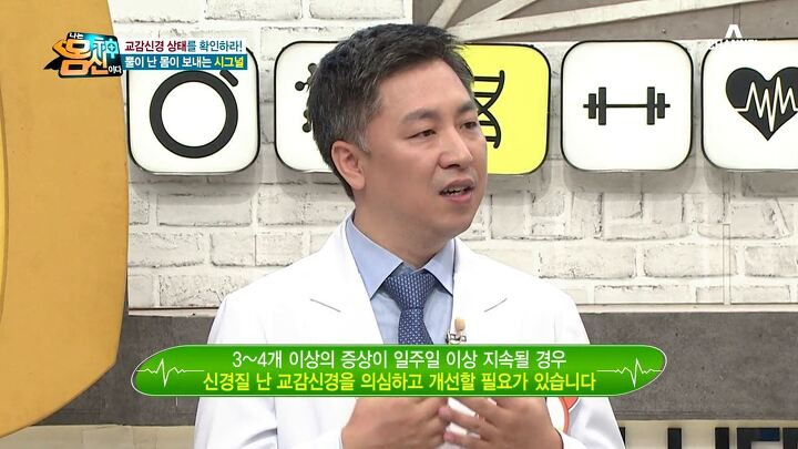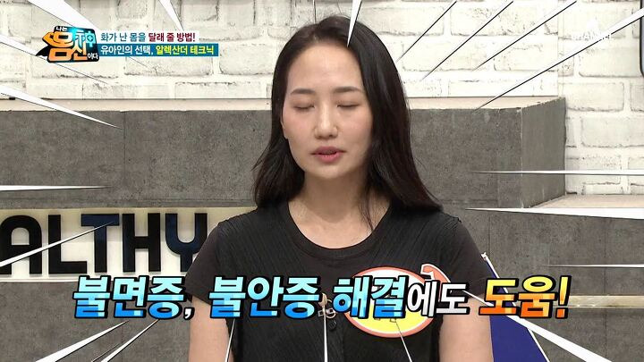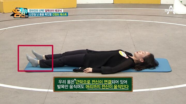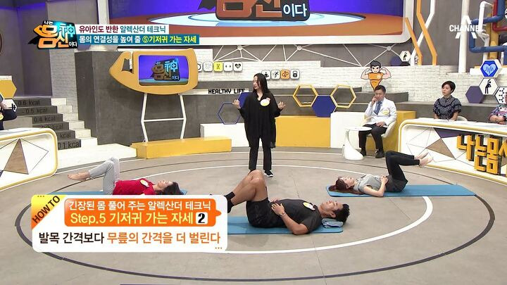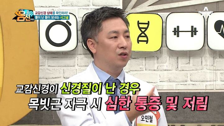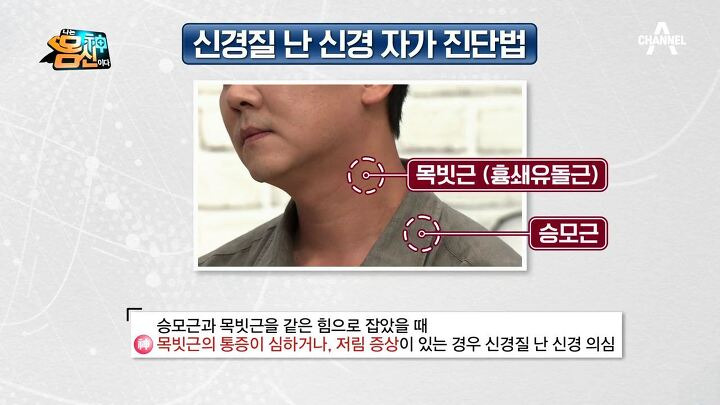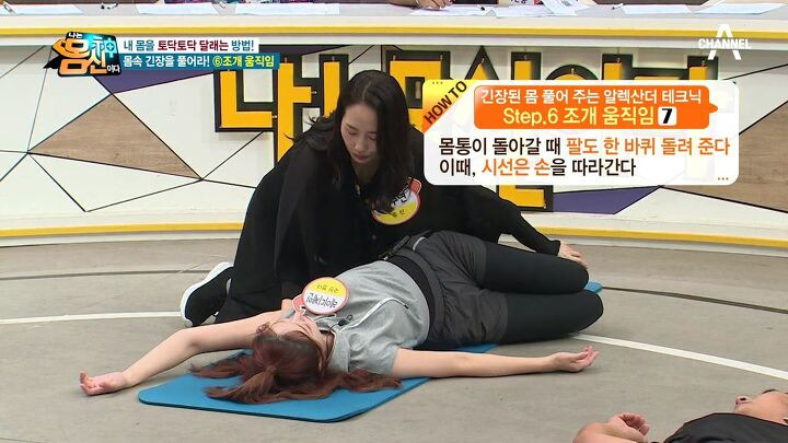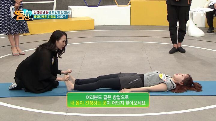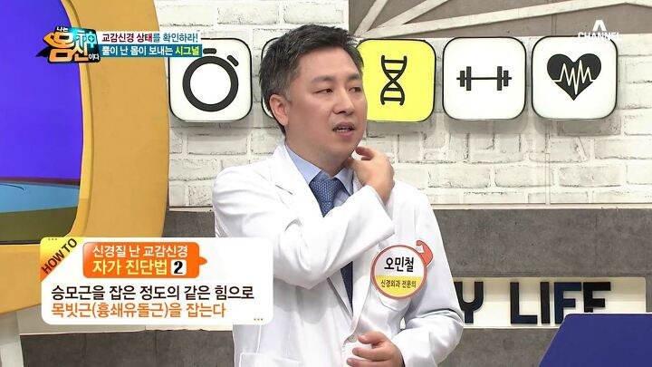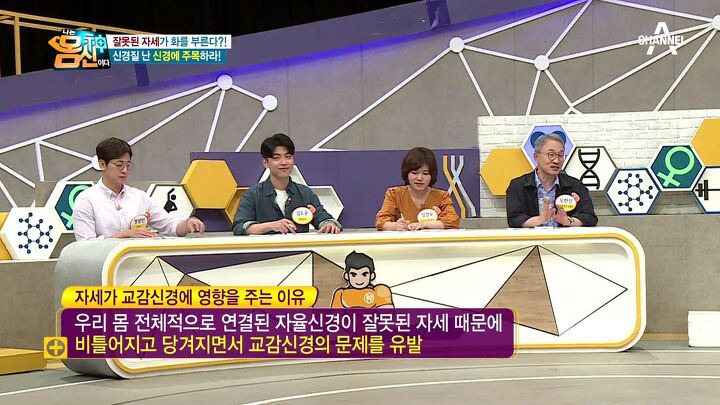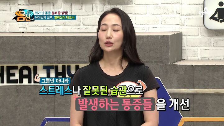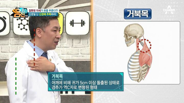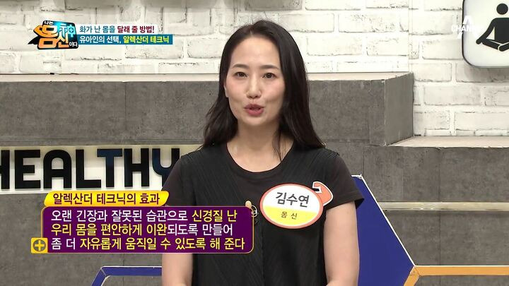 '거북목'이 내 몸에 끼치는 영향..? ※놀람 주의※ 몸이 신경질을 낸다? 내가 거북목이라면?! => 오늘 주목하셔야 합니다 :D Q. 거북목이란? A. 거북목은 어깨에 비해 귀가 5cm 이상 돌출된 상태로 경추가 역C자로 변형된 형태를 말합니다 목 근육 안에 교감신경이 지나기 때문에 거북목 자세를 오래 할 경우 근육이 당겨지면서 교감신경도 당겨진다고 합니다 이렇게 되면, 교감신경이 항진되는 자율신경 장애가 발생할 수 있다고 해요 이뿐 아니라, 자세가 교감신경에 나쁜 영향을 줄 수 있다고 하는데요 잘못된 자세 때문에 우리 몸 전체적으로 연결된 자율신경이 비틀어지고 당겨지면서 교감신경의 문제를 유발할 수 있다고 합니다 ㅜ^ㅜ 따. 라. 서 '신경질 난' 내 몸을 달래기 위해 바른 자세 유지가 도움이 된다고 해요 Q. 신경질 난 교감신경을 인지할 수 있는 방법은? A. 위 그림 증상 중, 3~4개 이상의 증상이 일주일 이상 지속될 경우 신경질 난 교감신경을 의심하고 개선할 필요가 있습니다. 이번에는 만져보면서 직접 진단해볼까요? 교감신경이 신경질 나면 거북목을 만드는 근육 목빗근이 많이 긴장됩니다 *신경질 난 교감신경* STEP 1. 승모근을 꼬집듯이 듬뿍 잡습니다 STEP 2. 승모근을 잡은 정도의 같은 힘으로 목빗근(흉쇄유돌근)을 잡습니다 목빗근을 잡았을 때 심한 통증과 저림이 느껴진다면 교감신경이 신경질 난 경우라고 해요 내 몸의 신경질을 다스리는 방법 신경질 난 교감신경을 다스리는 방법이 있다? 불필요한 움직임을 줄여 화가 난 몸을 달래 주는 알렉산더 테크닉! 알렉산더 테크닉은 오랜 긴장과 잘못된 습관으로 신경질 난 우리 몸을 편안하게 이완되도록 만들어 좀 더 자유롭게 움직일 수 있도록 해준다고 해요 그뿐만 아니라 스트레스나 잘못된 습관으로 발생하는 통증들을 개선하고 불면증, 불안증 해결에도 도움이 된다고 합니다 :D 내 몸을 편안하게 해 주는 움직임! 먼저 내 몸의 긴장도를 테스트해볼까요? 발꿈치는 바닥에 대놓고 발목만 까딱까딱 앞뒤로 움직여 봅니다 우리 몸은 근막으로 전신이 연결되어 있어 발목만 움직여도 머리까지 전신이 움직인다고 해요 이때, 몸에 경직된 부위가 있다면 발목의 움직임이 경직된 곳에서 막혀 전신 움직임은 볼 수 없다고 합니다! 이런 방법으로 진단해보면 내 몸이 잘 연결되어 있는지, 어디가 긴장하고 있는지 직접 체크해 볼 수 있어요! :D ### 긴장도 테스트! 내 몸을 편안히 만드는 방법 ### ## 영상으로 보기 ## ▼ 출처 몸신 가족들의 긴장도 테스트! 내 몸을 편안히 만드는 방법은?! 이번에는 ◎기저귀 가는 자세◎로 몸의 연결성을 높이는 방법을 알아볼게요 :) ◎기저귀 가는 자세◎ STEP 1. 편안히 누운 자세에서 다리를 가볍게 들어 올립니다 STEP 2. 발목 간격보다 무릎의 간격을 더 벌려줍니다 STEP 3. 몸은 그대로 두고 골반만 좌우로 아주 천천히 부드럽게 움직입니다 ◎조개 움직임◎ STEP 1. 기저귀 가는 자세에서 몸통은 그대로 두고 다리만 몸과 사선 방향으로 바닥에 내려 줍니다 STEP 2. 위 발은 아래 발 위에 살짝 얹어 놓습니다. 이때, 아래 발보다 위 발이 앞으로 살짝 더 나오도록 합니다 STEP 3. 조개가 입을 벌렸다 다물었다 하듯 무릎을 천천히 모았다 벌렸다 반복합니다 무릎을 억지로 모으지 않고 할 수 있는 만큼만 자연스럽게 해주면 됩니다 :D STEP 4. 움직임을 잠시 멈추고 고개를 돌려 시선은 무릎의 반대 방향의 손을 봅니다 STEP 5. 다시 무릎을 모았다 벌렸다 하는 움직임을 반복합니다 STEP 6. 무릎을 모았을 때 자연스럽게 어깨까지 움직임이 연결되면 몸통도 따라 움직입니다 STEP 7. 몸통이 돌아갈 때 팔도 한 바퀴 돌려줍니다 이때, 시선은 손을 따라갑니다 ### 긴장된 몸 풀어 주는 알렉산더 테크닉 ### ## 영상 보면서 따라 하기 ## ▼ 출처 화난 내 몸의 신경을 달래는 방법→ '조개 움직임'을 통해 긴장을 완화하라!