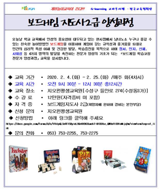 보드게임지도사과정 작성자박명이|작성시간20.01.09|조회수152 목록 댓글 0 글자크기 작게가 글자크기 크게가 신청방법 : 링크클릭 후 신청https://docs.google.com/forms/d/e/1FAIpQLSeRTl5ByieL9GnHX963Lmsh7-0fDUXsz_QWUaftO9foMkjq3w/viewform?usp=sf_link 다음검색 현재 게시글 추가 기능 열기 북마크 공유하기 신고 센터로 신고 댓글 댓글 0 댓글쓰기 답글쓰기 댓글 리스트