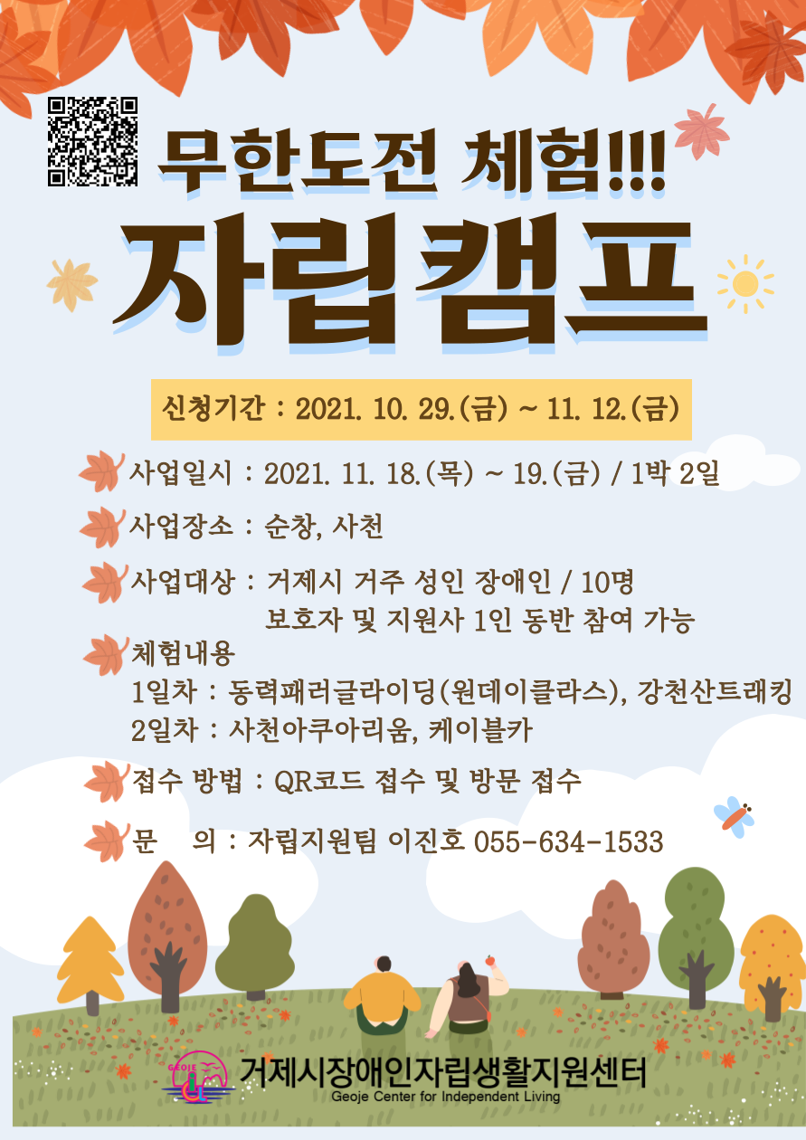 자립캠프 무한도전 참가자를 모집합니다. 작성자거제시장애인자립생활센터|작성시간21.10.29|조회수70 목록 댓글 0 글자크기 작게가 글자크기 크게가 우리센터에서는 자립캠프 무한도전 참가자를 모집합니다.많은 관심과 신청 부탁 드립니다. 다음검색 현재 게시글 추가 기능 열기 북마크 신고 센터로 신고 댓글 댓글 0 댓글쓰기 답글쓰기 댓글 리스트