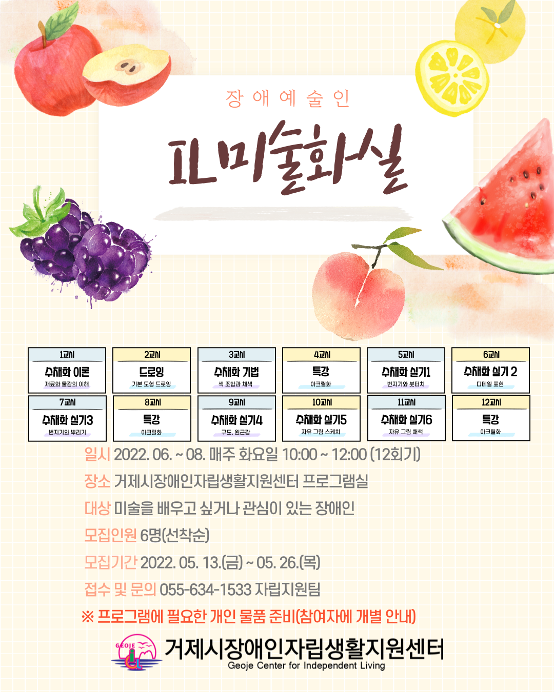 대상 : 미술을 배우고 싶거나 관심이 있는 장애인