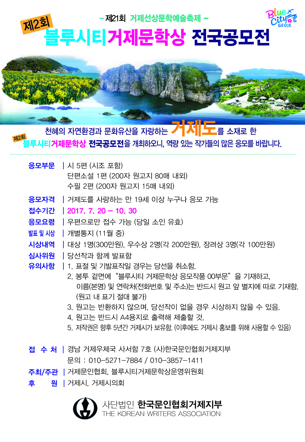 제2회 블루시티거제문학상 전국공모전 작성자죽전|작성시간17.07.13|조회수48 목록 댓글 0 글자크기 작게가 글자크기 크게가 다음검색 현재 게시글 추가 기능 열기 북마크 신고 센터로 신고 댓글 댓글 0 댓글쓰기 답글쓰기 댓글 리스트