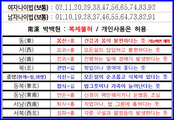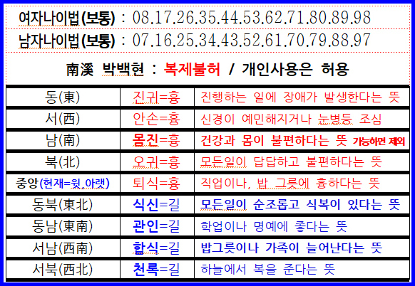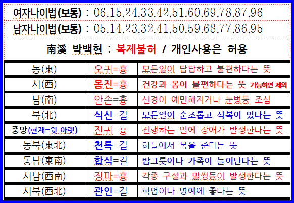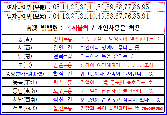 이사방위는 나이와 성별, 그리고 주소, 이사시기.
