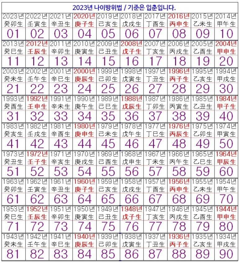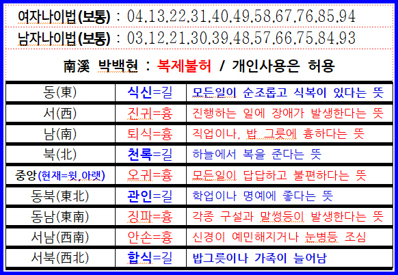 아래는 나이와 성별로 보는 나이방위표입니다.
