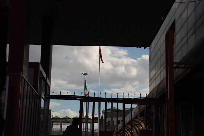 저 멀리 출입국 사무소 건물에 이란 기가 나붓기고 있다.