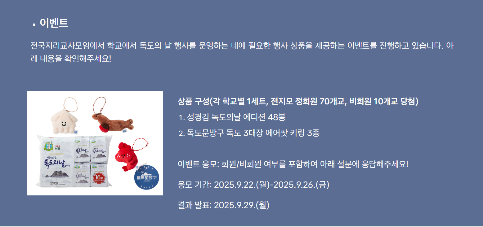2. 2025 전국지리교사모임 독도 교육 주간 지원 이벤트