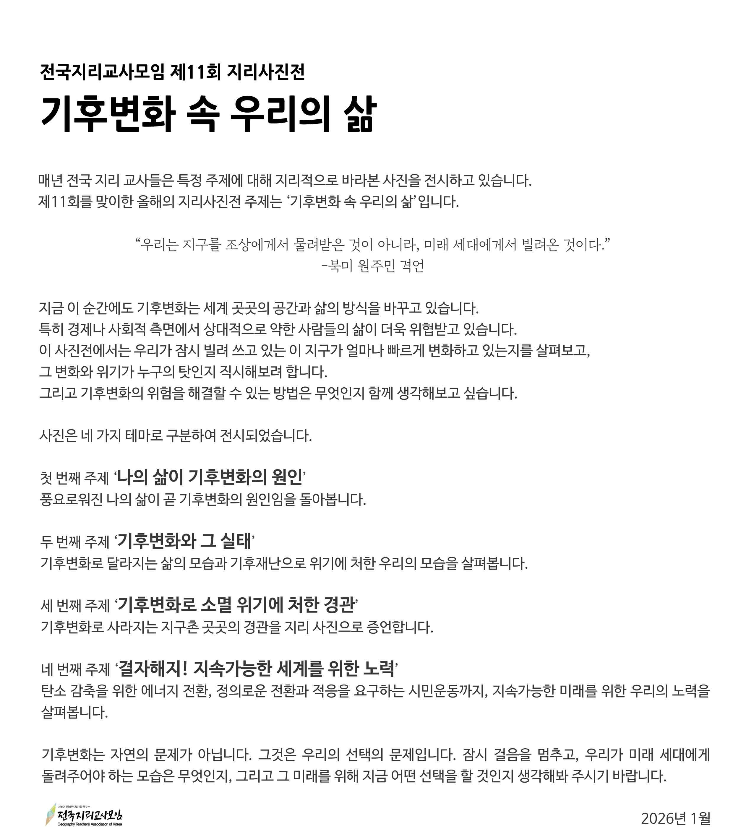 2026년 제11회 지리사진전이 오픈되었습니다!