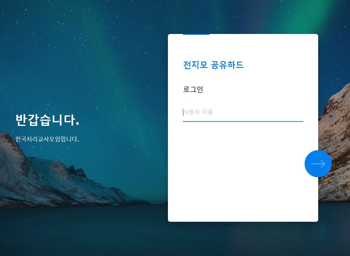 - 전지모홈페이지(geoteacher.net)의 ‘공유하드’ 버튼 클릭
