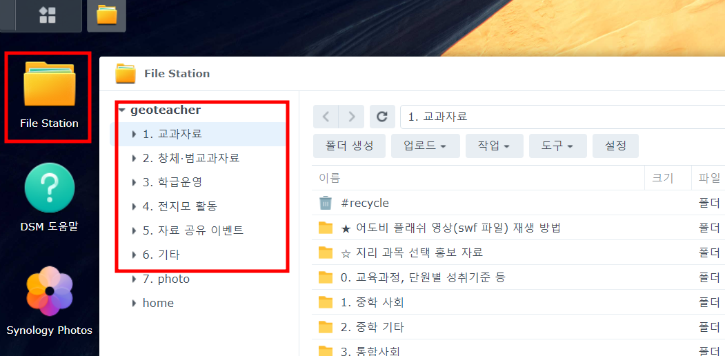 "File Station" 클릭 > 원하는 자료 폴더 클릭