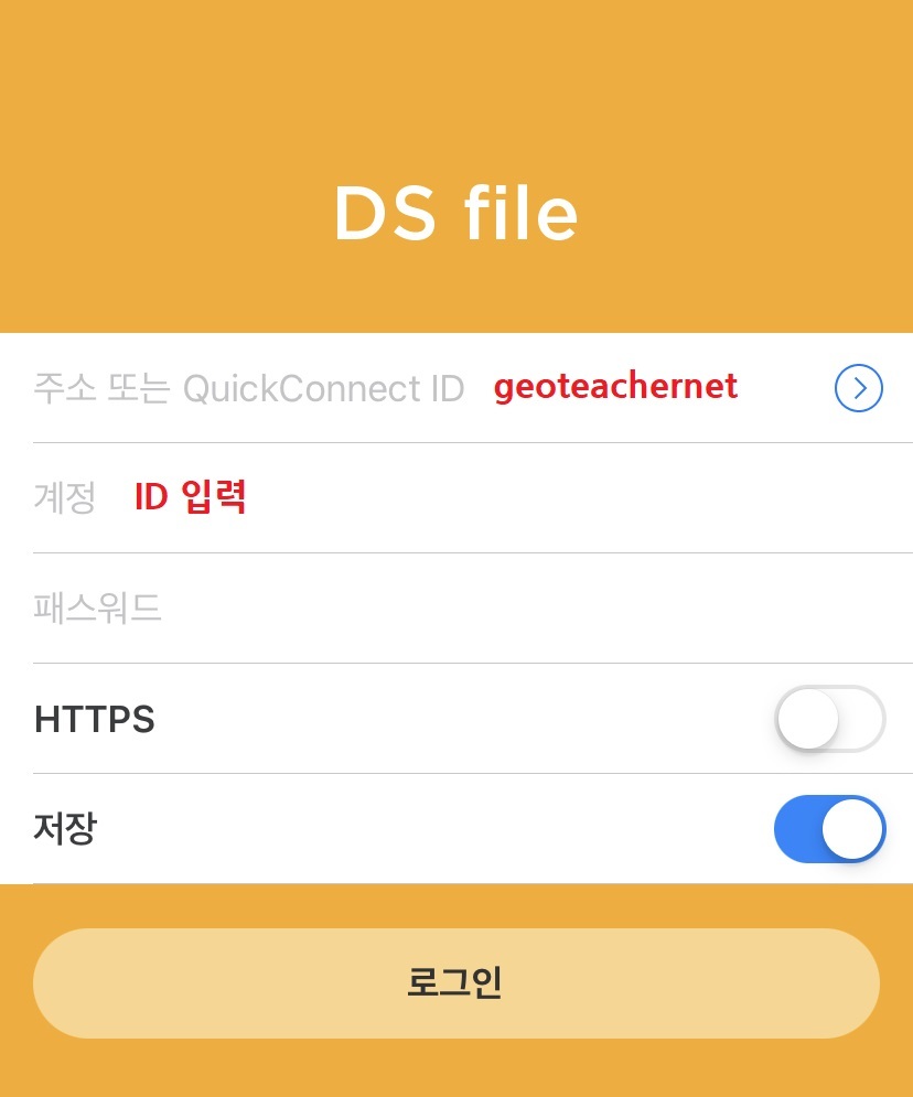 - 주소 또는 QuickConnect ID: geoteachernet