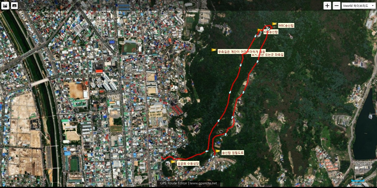 송신탑 업힐도로(수동)~ 복천암 ~ MBC송신탑 ~ KBS송신탑 ~ 약수터(운동기구)지나면서 묘지에서 간판옆으로 좌회전 다운해야함