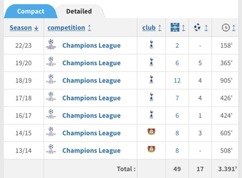 참고로 손흥민은 챔스 통산 17골이랍니다