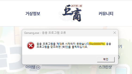 원인은 여러가지가 있겠지만, 거상 실행에서 발생하는 이 오류는