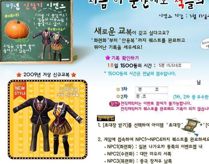 [헉!!!이건 뭐지;;]신교복 이벤트..뭐지? 작성자[봉황]블랑|작성시간09.03.19|조회수967 목록 댓글 8 글자크기 작게가 글자크기 크게가 1500등 시간이. .어제는 3분대였는데..? 영자가 조작했남 ㅇㅅㅇ? 다음검색 현재 게시글 추가 기능 열기 북마크 공유하기 신고 센터로 신고 댓글 댓글 8 댓글쓰기 답글쓰기 댓글 리스트 작성자[영웅]비아 | 작성시간 09.03.20 어제확인했을때 3분17초였어요.. 5분15초면 쉬엄쉬엄 가도 되겠네요 `` 작성자[신구] 청학동훈사 | 작성시간 09.03.20 2분 0.190초 나왔습니다. 작성자[신구]중세유럽 | 작성시간 09.03.20 초대장을 상점에 판 1인 작성자[백호]바보사절2 | 작성시간 09.03.20 ㅇㅅㅇ? 작성자kdw1986 | 작성시간 09.03.20 이거 교복 받으면 만약 15일 기간 일 가능성이 높겠네요... 저는 귀속템이였으면 좋겠다는 ㅋ 댓글 전체보기
