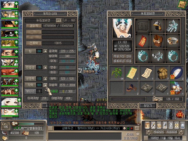 렙 : 163!! (백종을 안하니... 높군요!!)