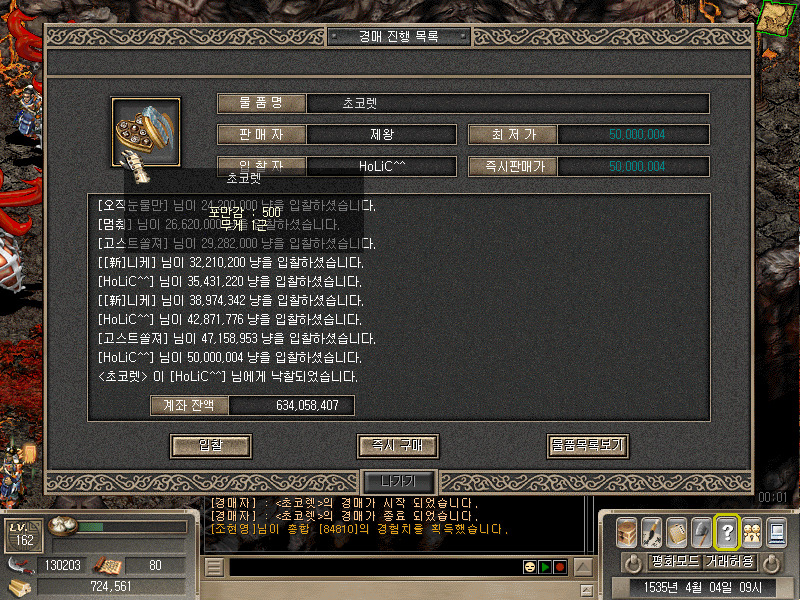 작성자[세종][新]니케 작성시간 11.10.31 추가설명 세종상단 제왕대방님께서 지원와준 행수님들상대로한 이벤트 위에샷 보시면 고스트쏠져님이 당첨자 아래Holic^^님은 아쉽게 돈만날린 뭐 그런샘이 된거죠 ㅎ 저도 도전해봤지만 저역시 한번 돈만 날린 여튼 나름 재미난 이벤트였씁니다